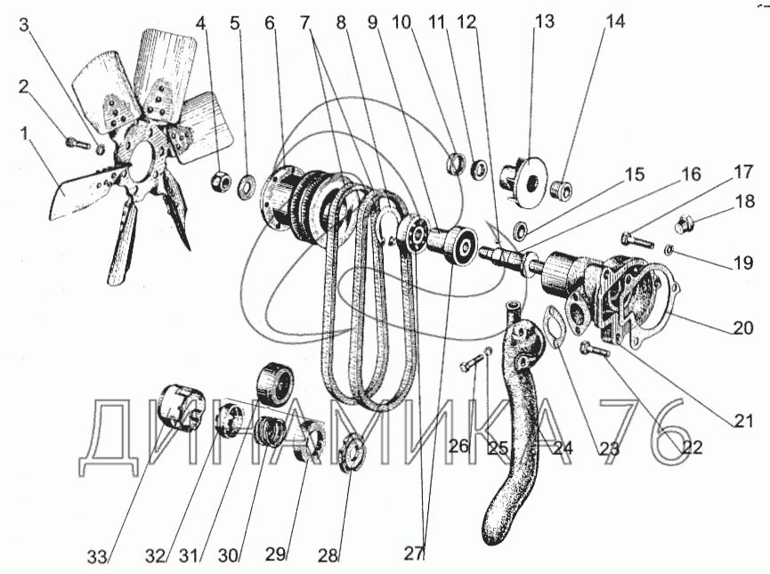 Водяной насос. Вентилятор — МТЗ-1005: