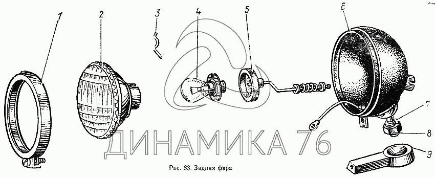 Перечень комплектующих от Задняя фара на МТЗ-100