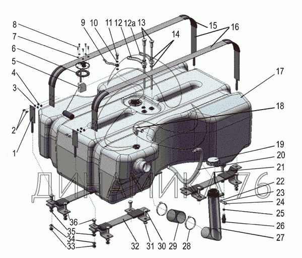Перечень комплектующих от Бак топливный на МТЗ-1021.3