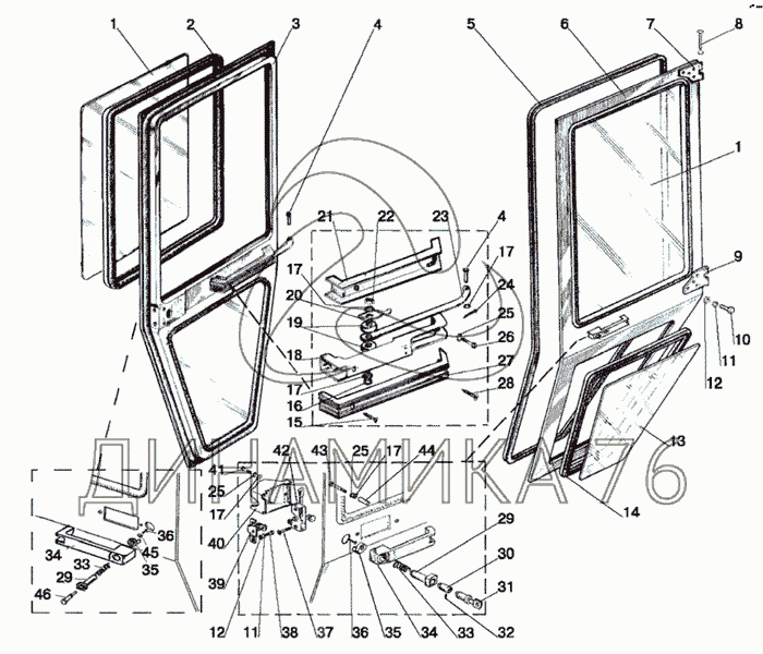 Перечень комплектующих от Двери кабины на МТЗ-1021.3