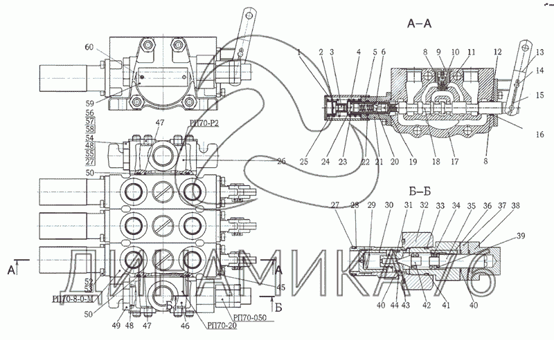 Перечень комплектующих от Гидрораспределитель РП70 на МТЗ-1021.3