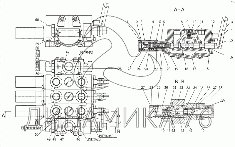 Перечень комплектующих от Гидрораспределитель РП70 на МТЗ-1025.4