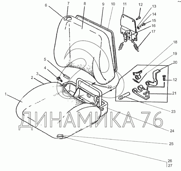 Перечень комплектующих от Сиденье оператора на МТЗ-1025.4
