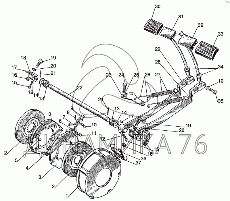 Перечень комплектующих от Тормоза, управление тормозами на МТЗ-1025.4