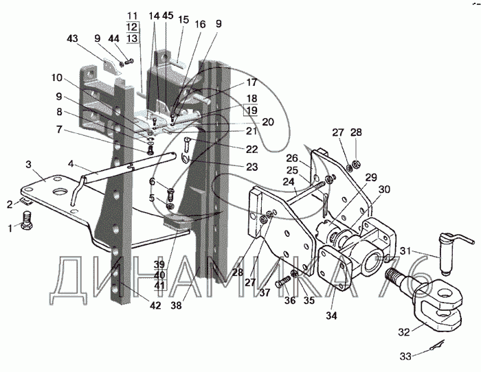 Перечень комплектующих от Тягово-сцепное устройство на МТЗ-1025.4
