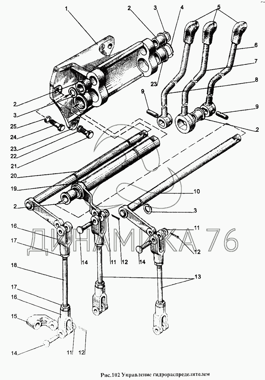 Управление гидрораспределителем на МТЗ-1221 (до 1997 г.)