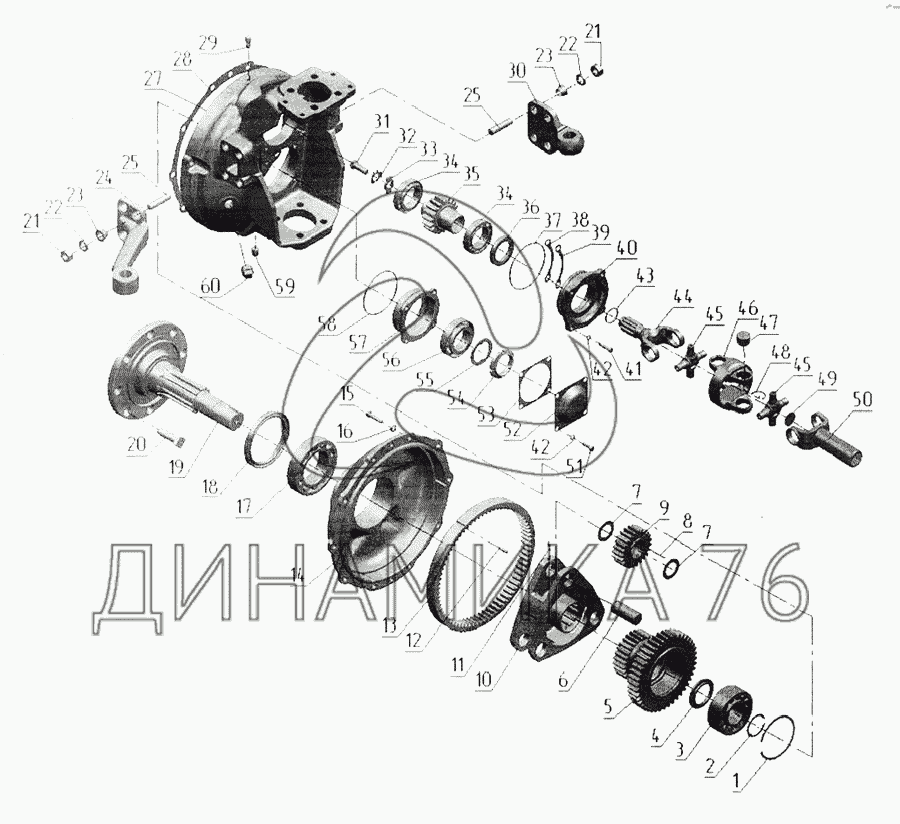 Редуктор левый конечной передачи переднего ведущего моста