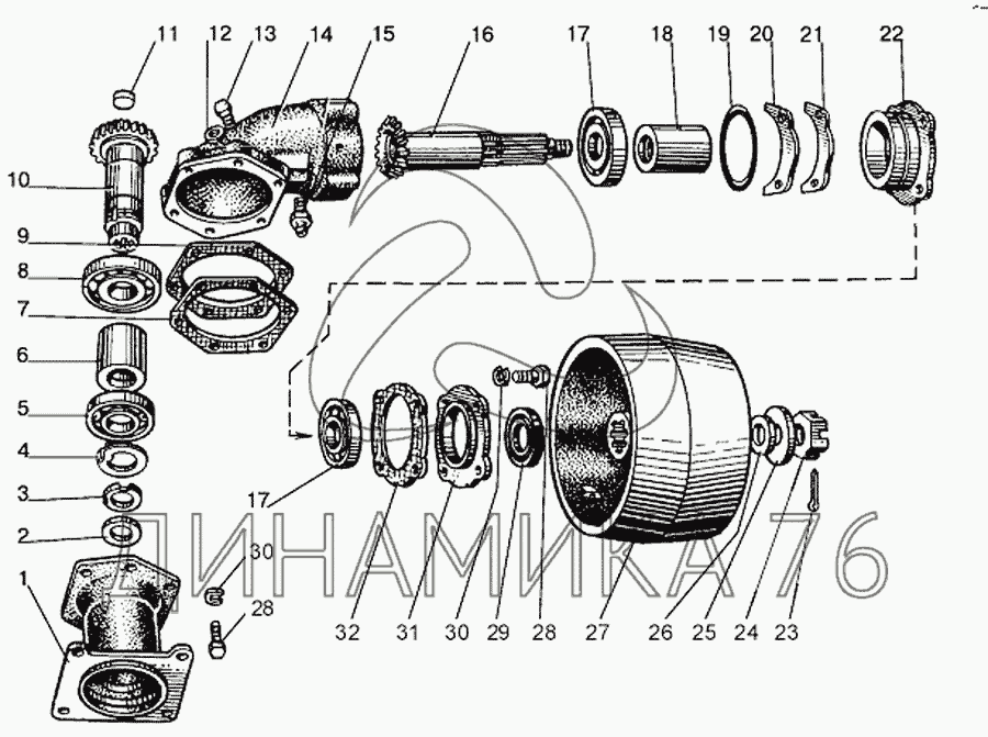 Вал со стаканом, подшипником и втулкой в сборе