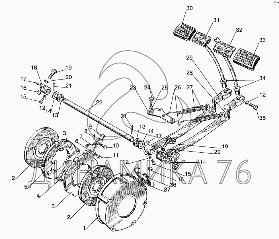 Перечень комплектующих от Тормоза. Управление тормозами на МТЗ-1221.4