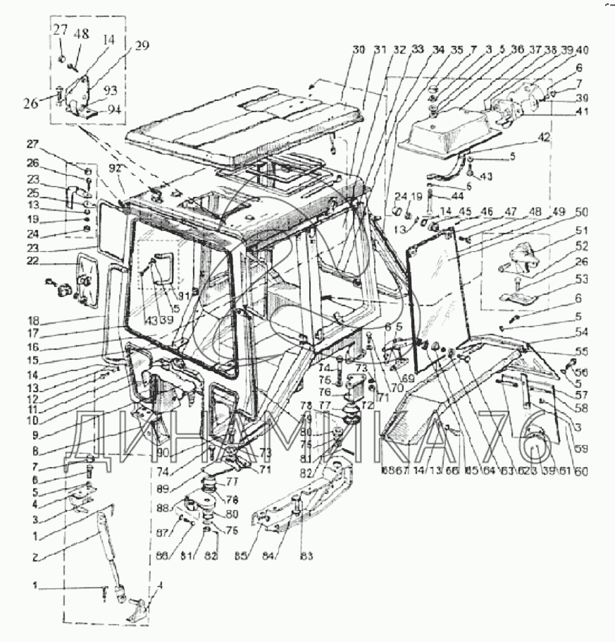 Схемы запчастей предназначены для справочных целей! Мы продаем не все запчасти от Кабина трактора на МТЗ-1221.4, представленные в этом списке.