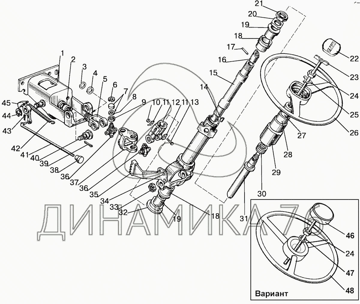 Перечень комплектующих от Колонка рулевая на МТЗ-1221.4