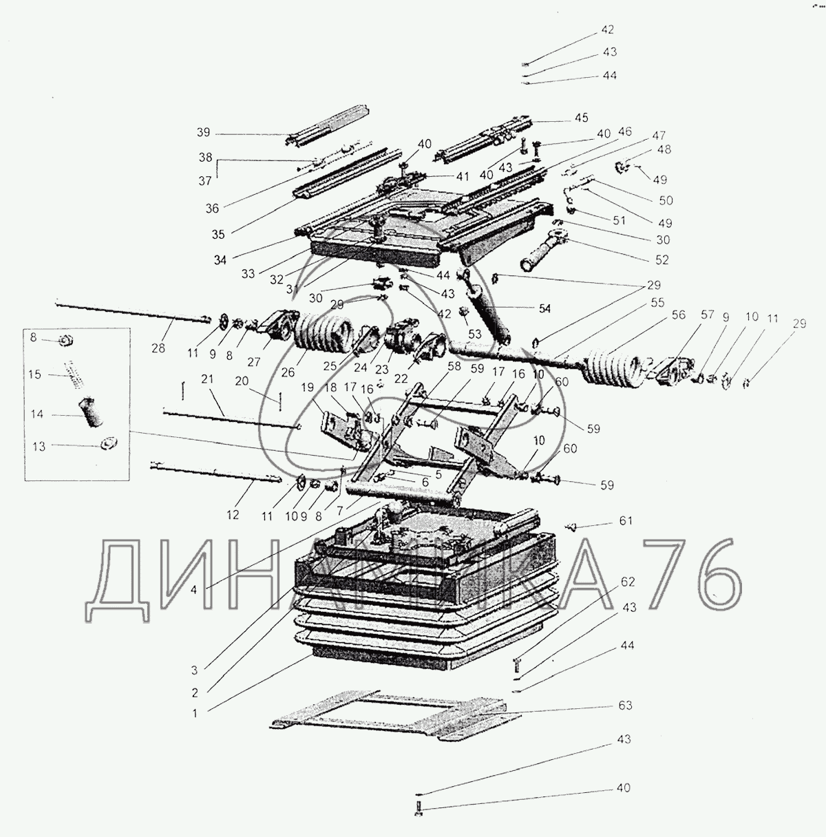 Схемы запчастей предназначены для справочных целей! Мы продаем не все запчасти от Подвеска сиденья на МТЗ-1221.4, представленные в этом списке.