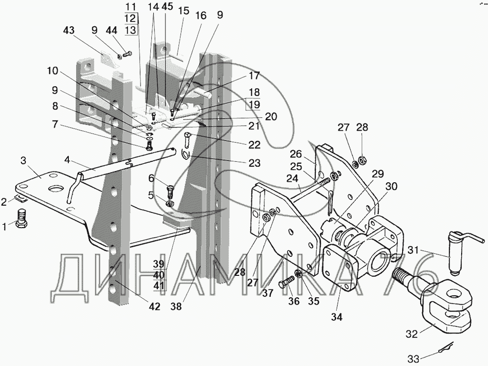 Перечень комплектующих от Тягово-сцепное устройство на МТЗ-1221.4