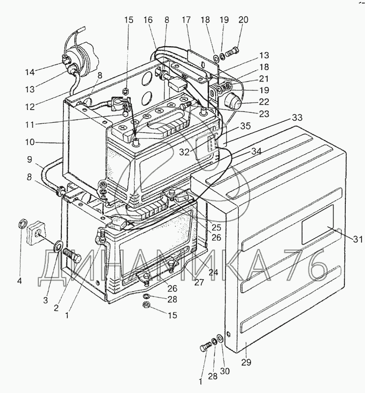 Схемы запчастей предназначены для справочных целей! Мы продаем не все запчасти от Установка батарей аккумуляторных на МТЗ-1221.4, представленные в этом списке.