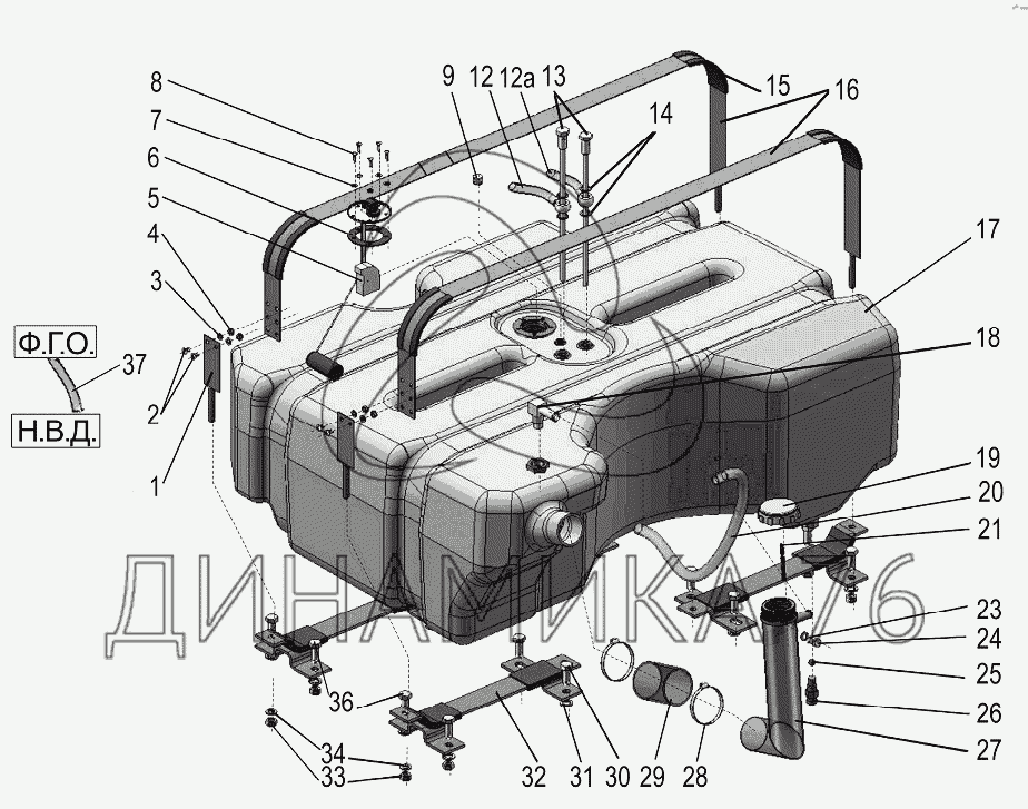 Перечень комплектующих от Бак топливный на МТЗ-1221.5