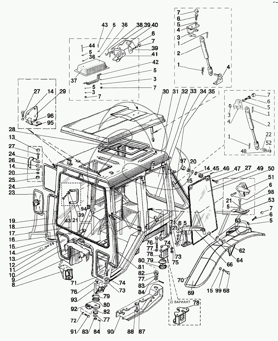Схемы запчастей предназначены для справочных целей! Мы продаем не все запчасти от Кабина трактора на МТЗ-1221.5, представленные в этом списке.