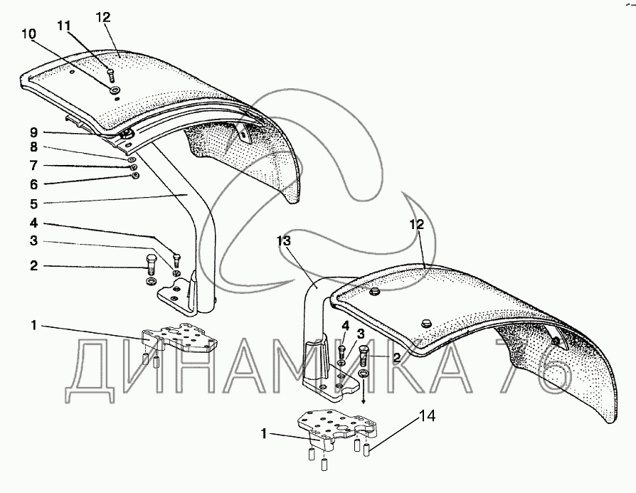Схемы запчастей предназначены для справочных целей! Мы продаем не все запчасти от Крылья передних колес на МТЗ-1221.5, представленные в этом списке.
