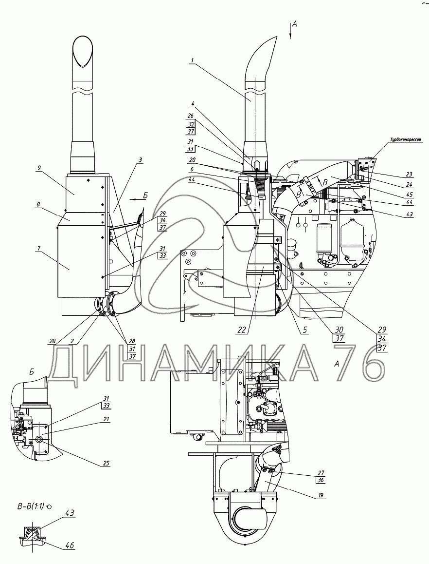 Схемы запчастей предназначены для справочных целей! Мы продаем не все запчасти от Установка глушителя на МТЗ-1221.5, представленные в этом списке.
