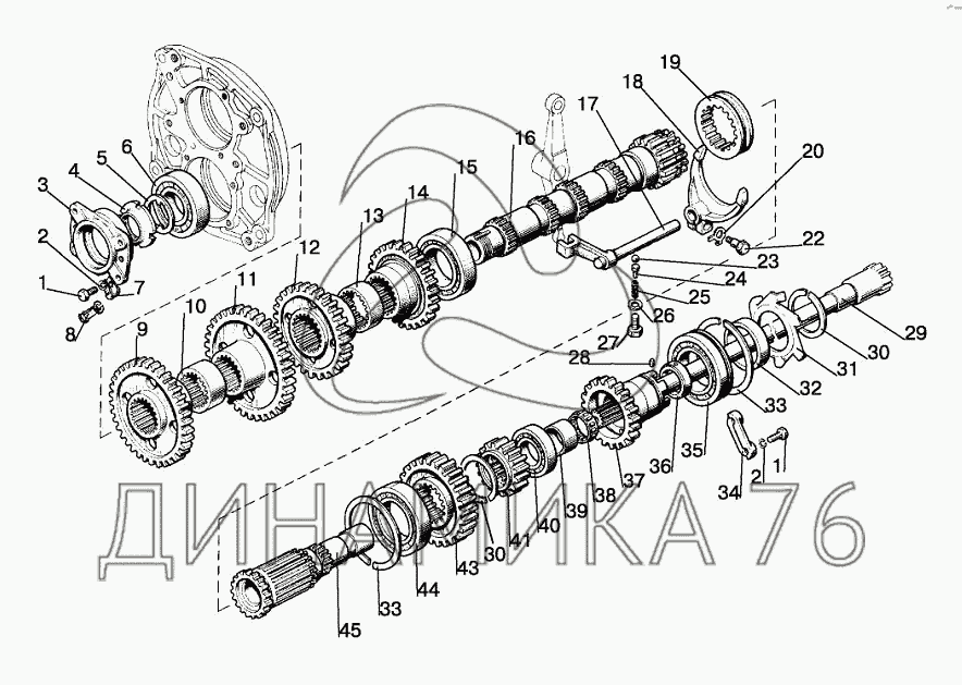 Схемы запчастей предназначены для справочных целей! Мы продаем не все запчасти от Вал промежуточный (16F+8R) на МТЗ-1221.5, представленные в этом списке.