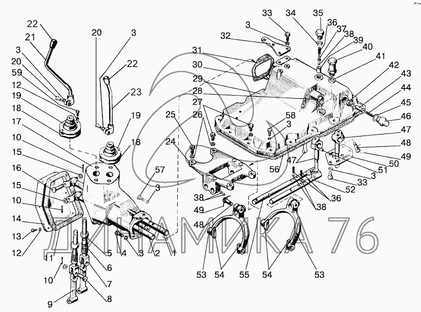 Механизм управления коробкой передач на МТЗ-1221 (2009) (до 2009 г.)