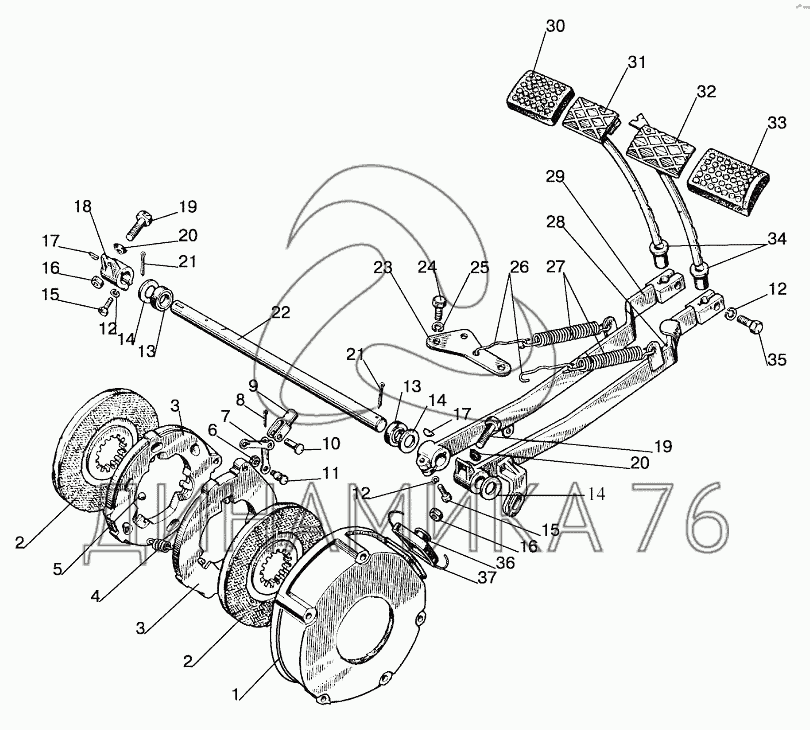 Перечень комплектующих от Тормоза. Управление тормозами на МТЗ-1221 (2009)