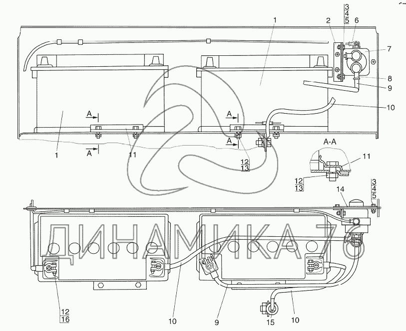Перечень комплектующих от Установка аккумуляторных батарей («БЕЛАРУС-1221/1221.2/1221.3») на МТЗ-1221 (2009)