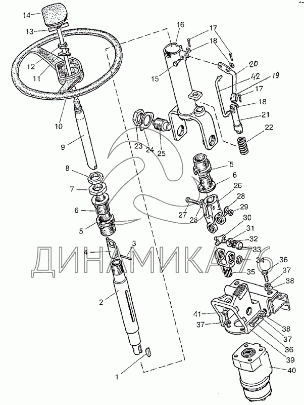 Схемы запчастей предназначены для справочных целей! Мы продаем не все запчасти от Колонка рулевая (реверс) на МТЗ-1222/1523, представленные в этом списке.