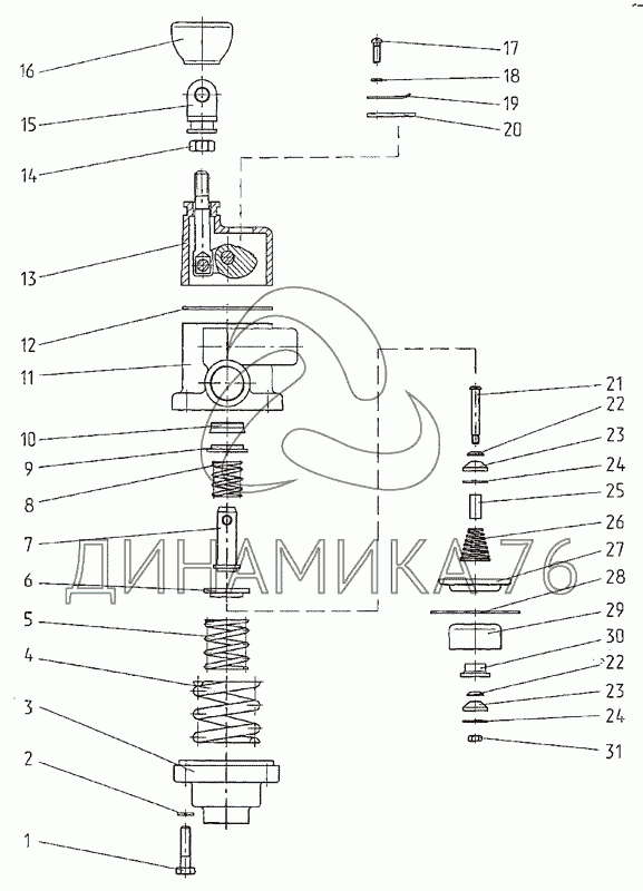 Перечень комплектующих от Кран тормозной на МТЗ-1222/1523