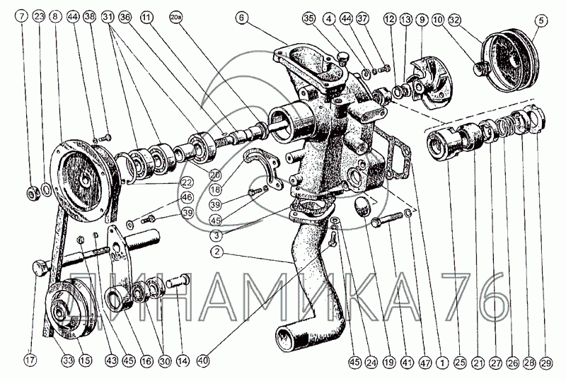 Перечень комплектующих от Насос водяной и натяжитель на МТЗ-1222/1523