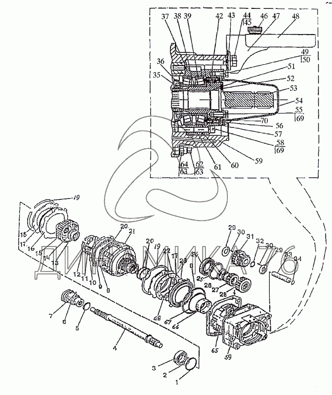 Схемы запчастей предназначены для справочных целей! Мы продаем не все запчасти от Вал отбора мощности на МТЗ-1222/1523, представленные в этом списке.