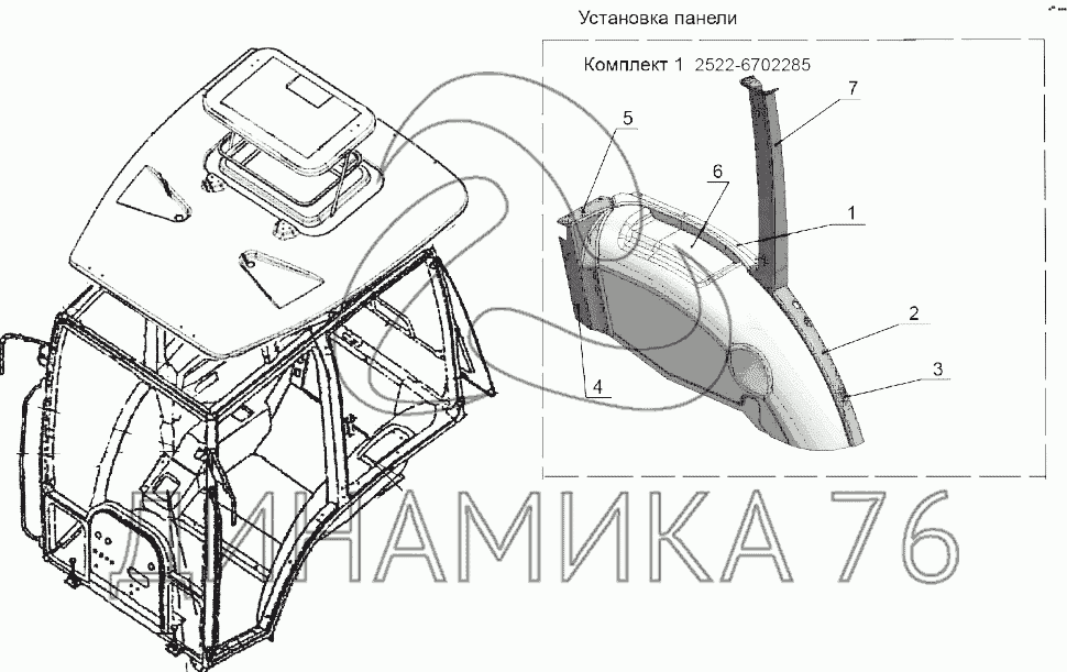 Перечень комплектующих от 2522-6702285 Установка панели на МТЗ-1523