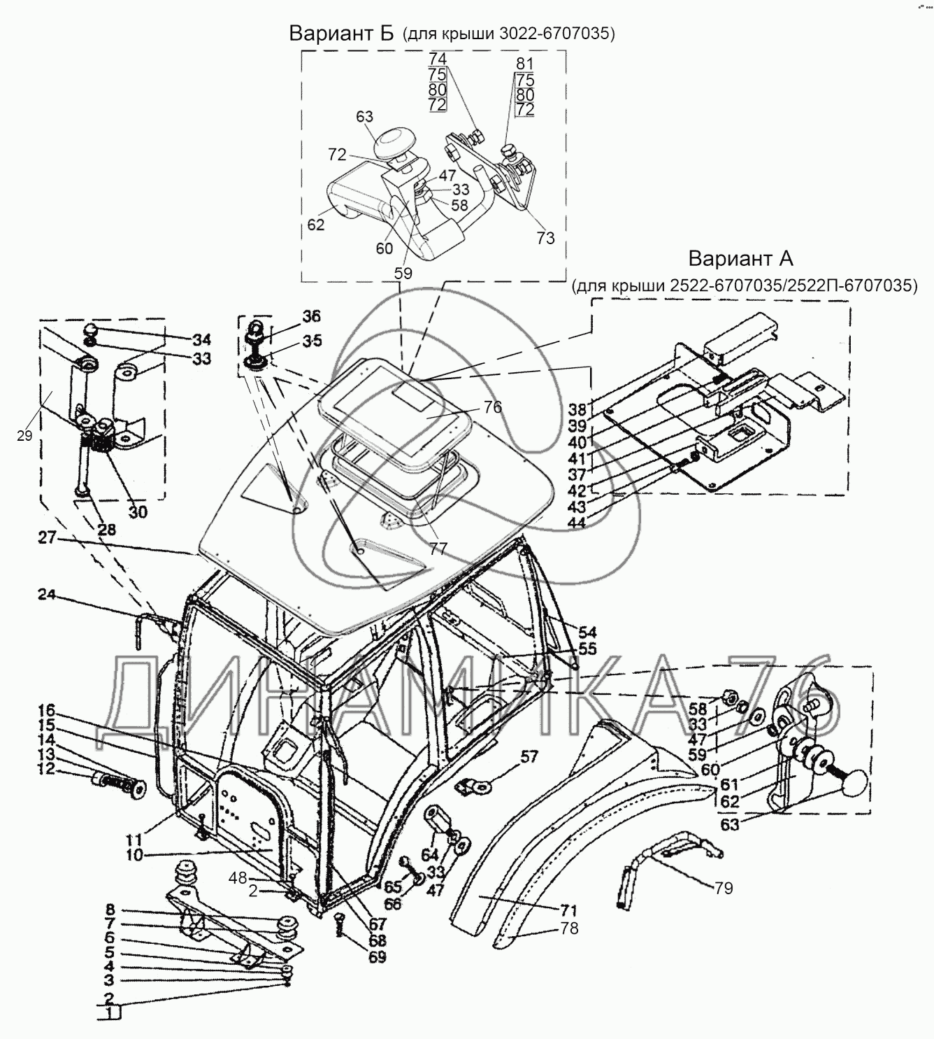 Перечень комплектующих от Кабина трактора на МТЗ-1523