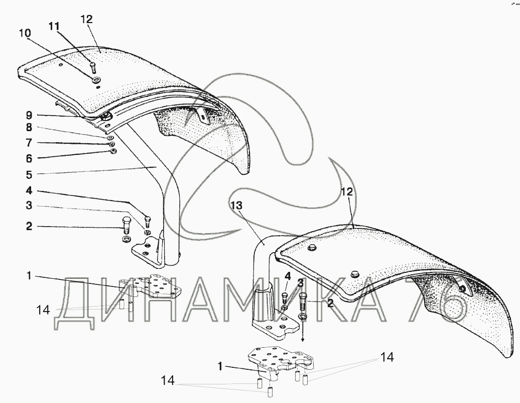 Схемы запчастей предназначены для справочных целей! Мы продаем не все запчасти от Крылья передних колес на МТЗ-1523, представленные в этом списке.