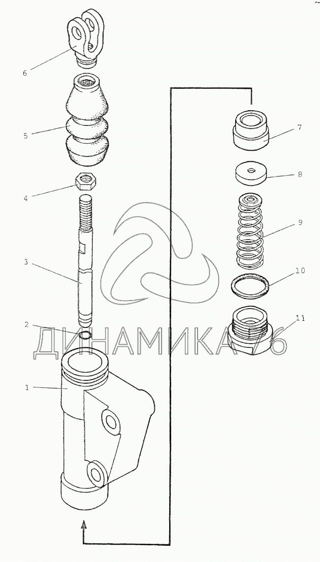 Перечень комплектующих от Цилиндр главный (на реверсе) на МТЗ-1523