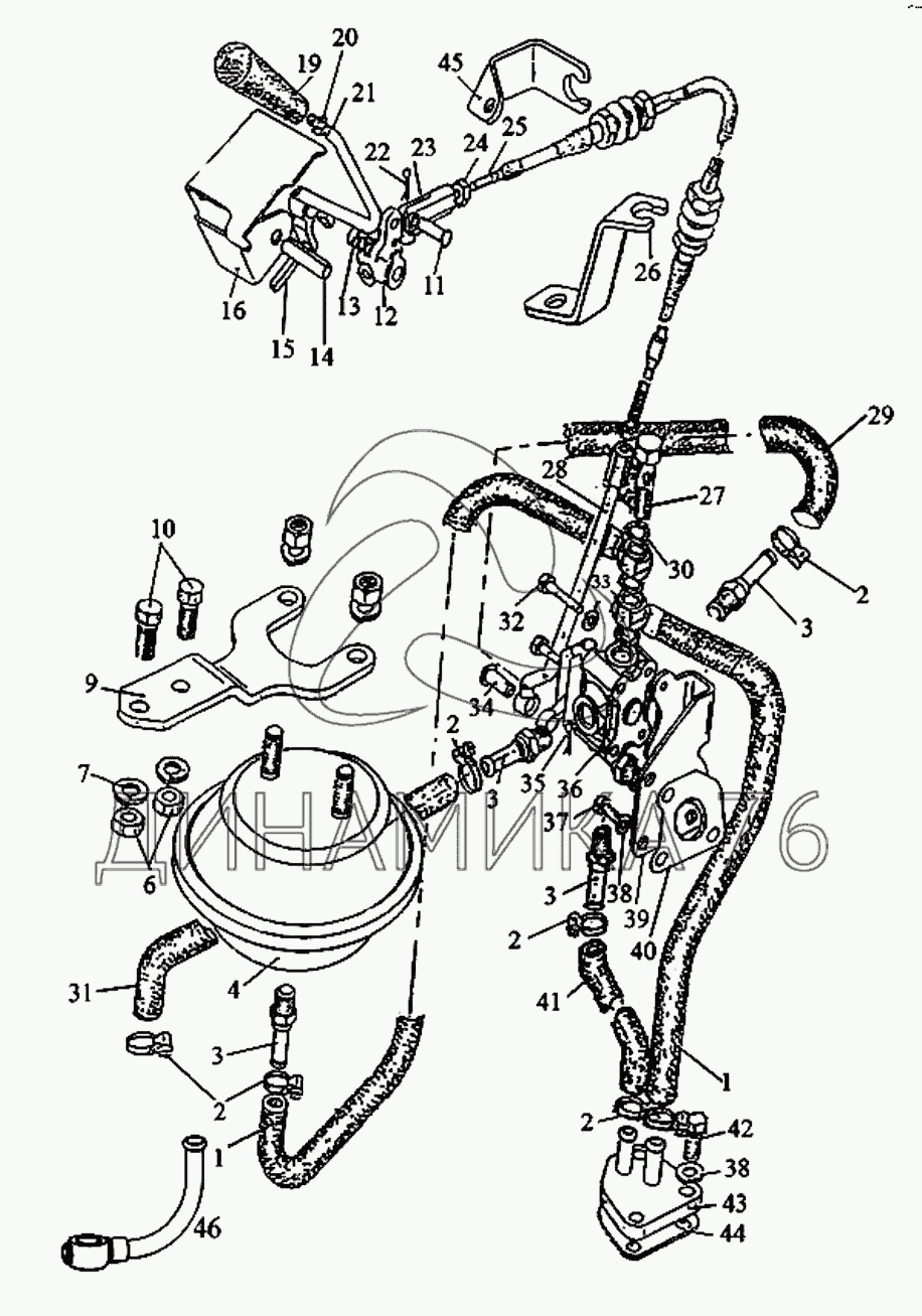 Перечень комплектующих от Управление гидроприводом заднего ВОМ на МТЗ-1523