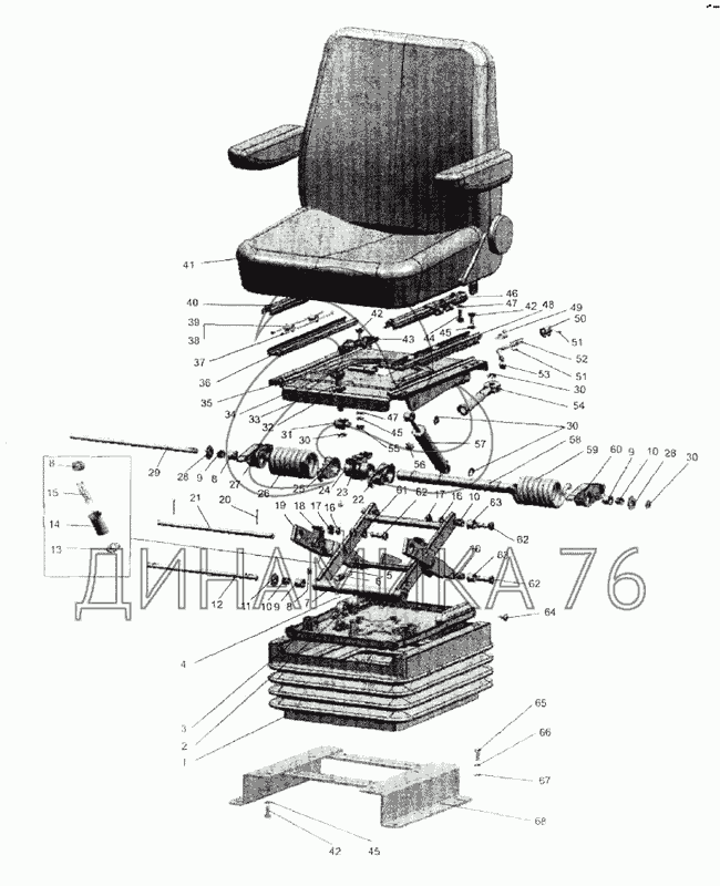 Перечень комплектующих от Сиденье оператора на МТЗ-1523.4