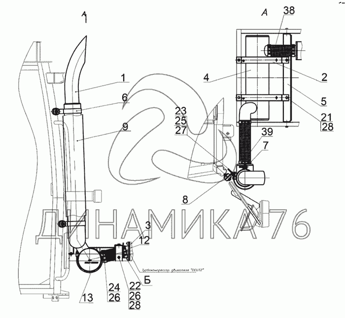Перечень комплектующих от Установка глушителя на МТЗ-1523.4