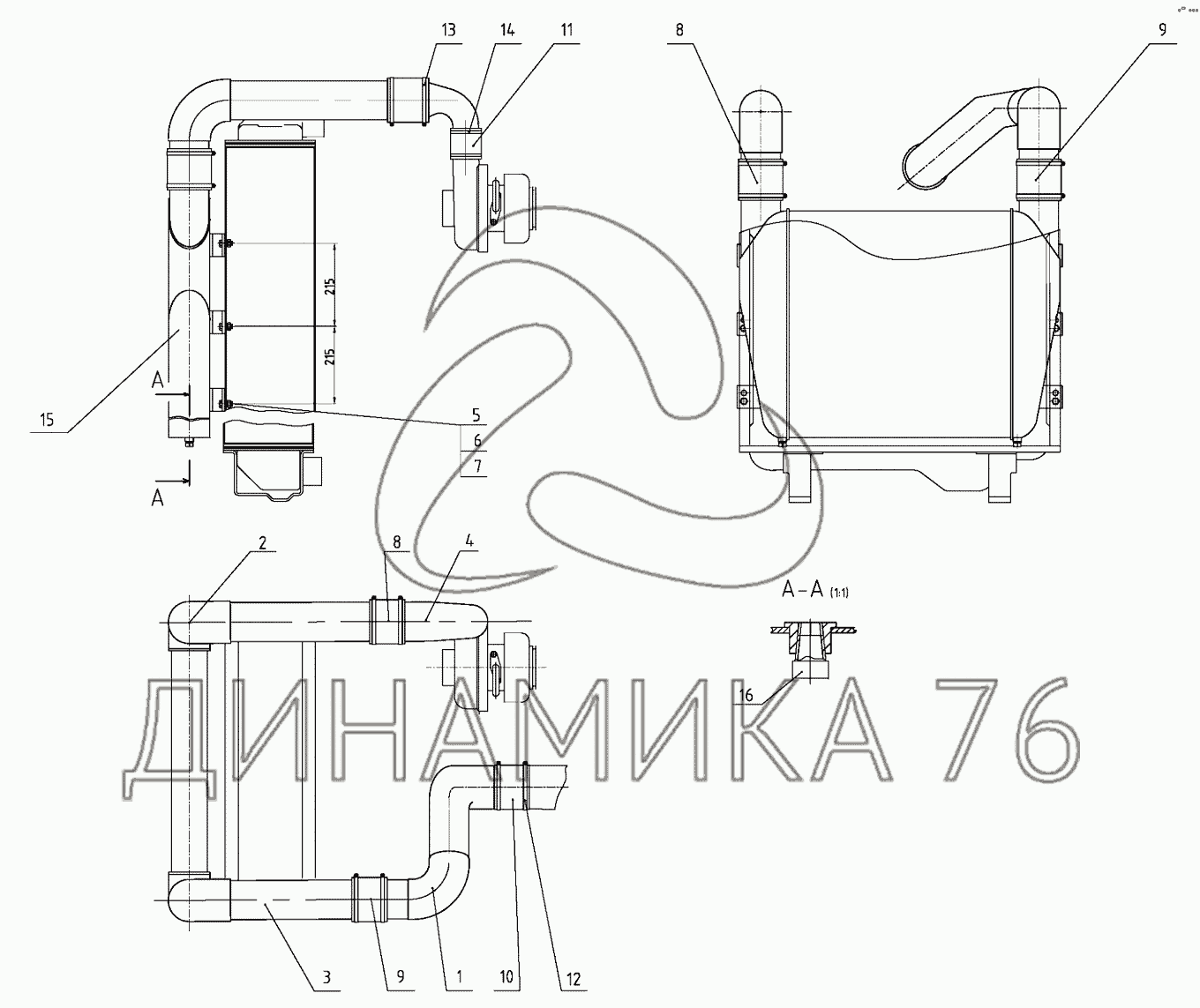 Перечень комплектующих от Установка охладителя на МТЗ-1523.6