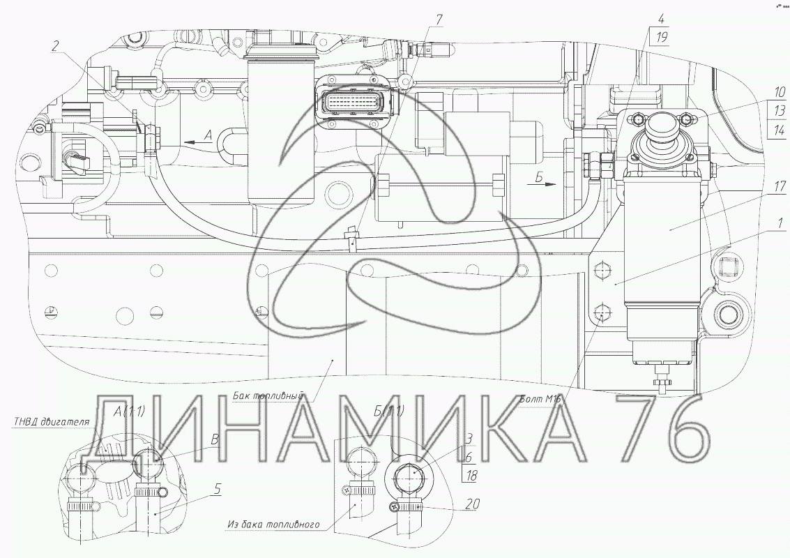 Установка топливного фильтра на МТЗ-1523.6 (до 2018 г.)