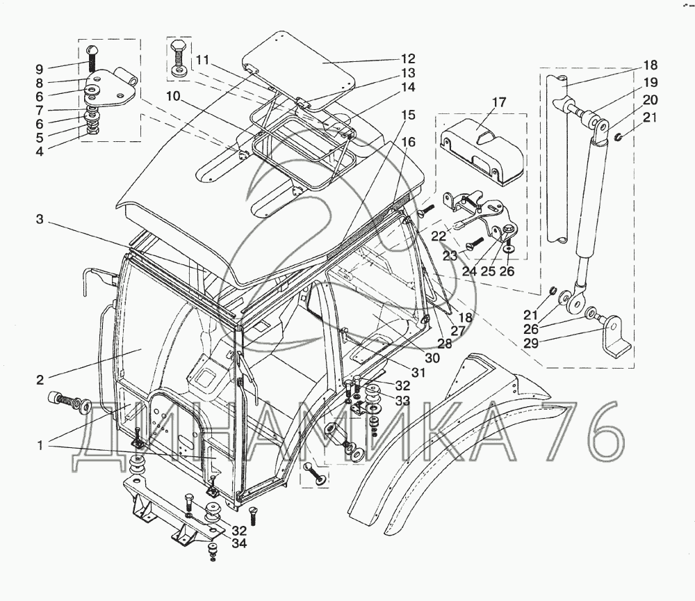 Перечень комплектующих от Кабина на МТЗ-1523 (2008)