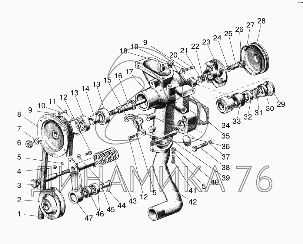 Насос водяной и натяжитель — МТЗ-1523 (2008):