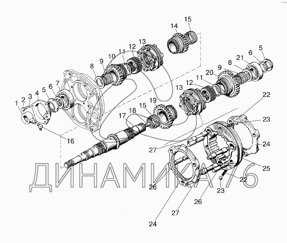 Узел передач и 1522-1701190-вал промежуточный