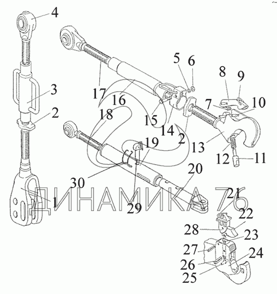 Перечень комплектующих от Узлы и элементы навесного устройства на МТЗ-2022