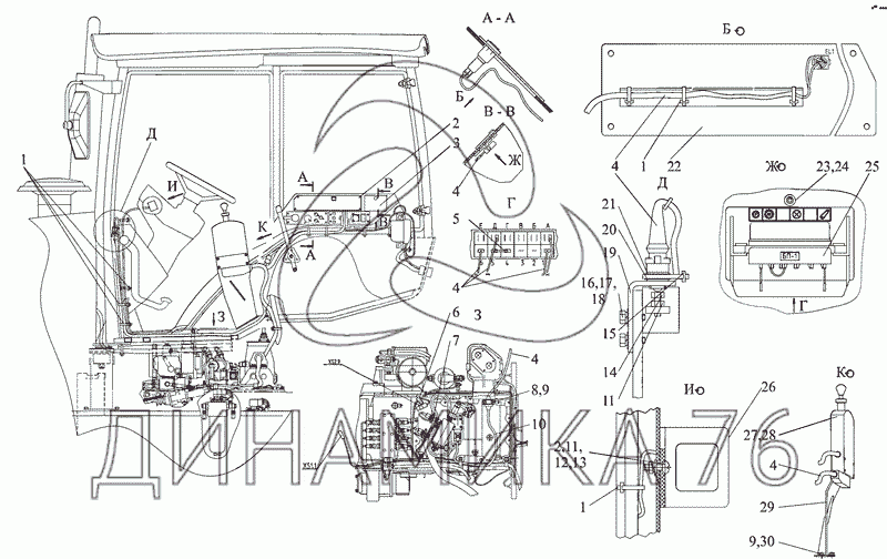 Перечень комплектующих от Управление переключением передач и редуктора на МТЗ-2103