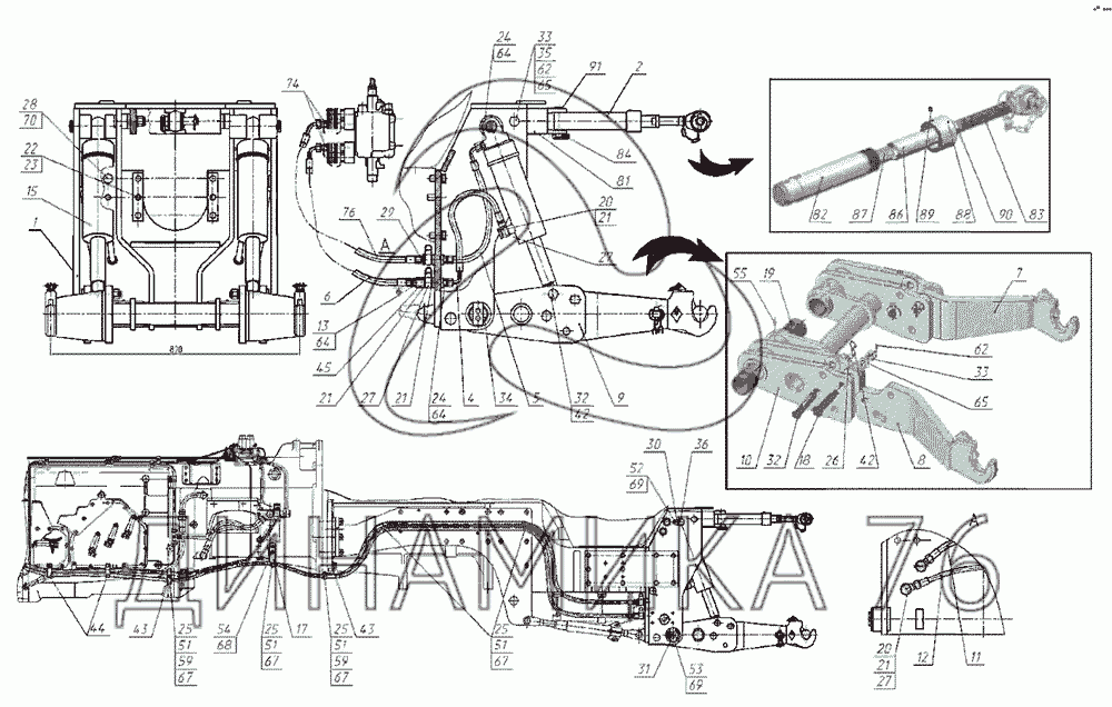 Перечень комплектующих от Переднее навесное устройство на МТЗ-2522