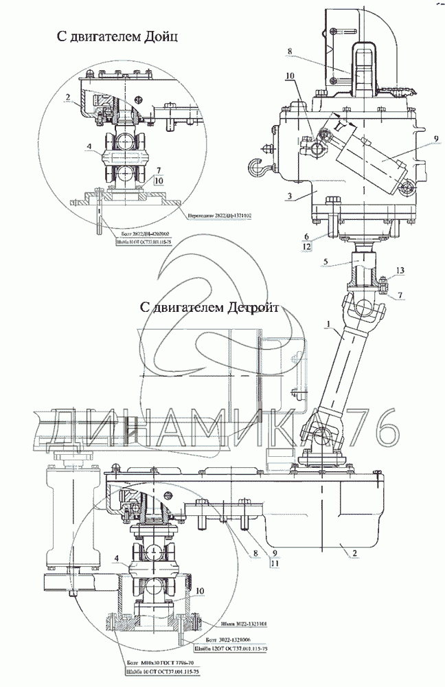 Перечень комплектующих от ВОМ передний на МТЗ-2522
