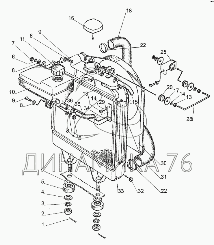 Перечень комплектующих от Радиатор водяной на МТЗ-310, 320, 321