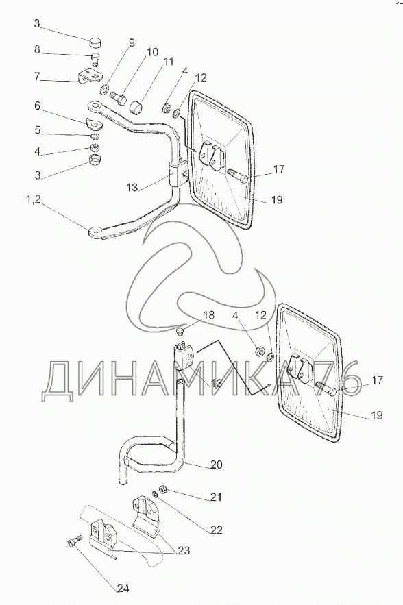Перечень комплектующих от Зеркало наружное на МТЗ-310, 320, 321