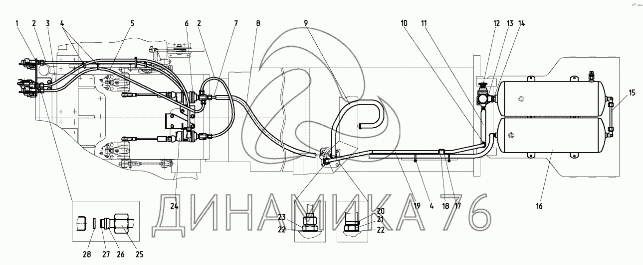 Перечень комплектующих от Пневмопривод тормозов прицепа (комбинированный) на МТЗ-3522