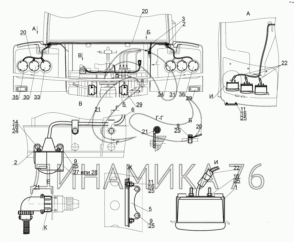 Схемы запчастей предназначены для справочных целей! Мы продаем не все запчасти от Установка фонарей задних на МТЗ-3522, представленные в этом списке.